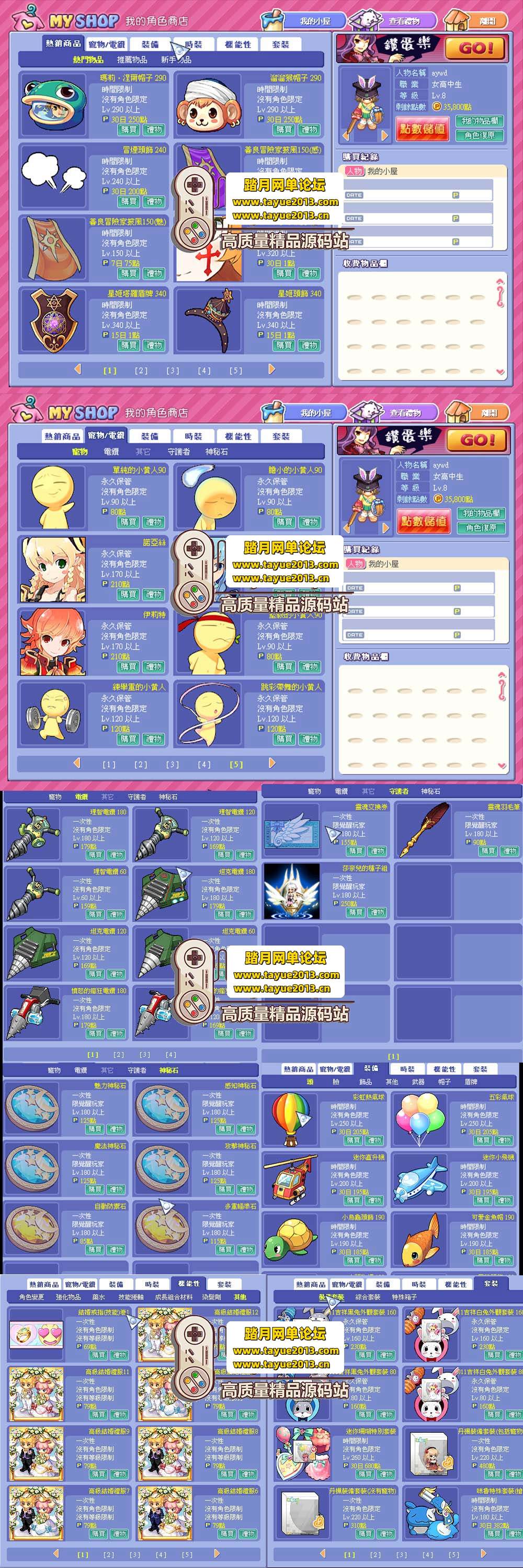 可乐之家商店 出售一些道具 装备 神秘卡 新添加了几个宠物 超级紫钻