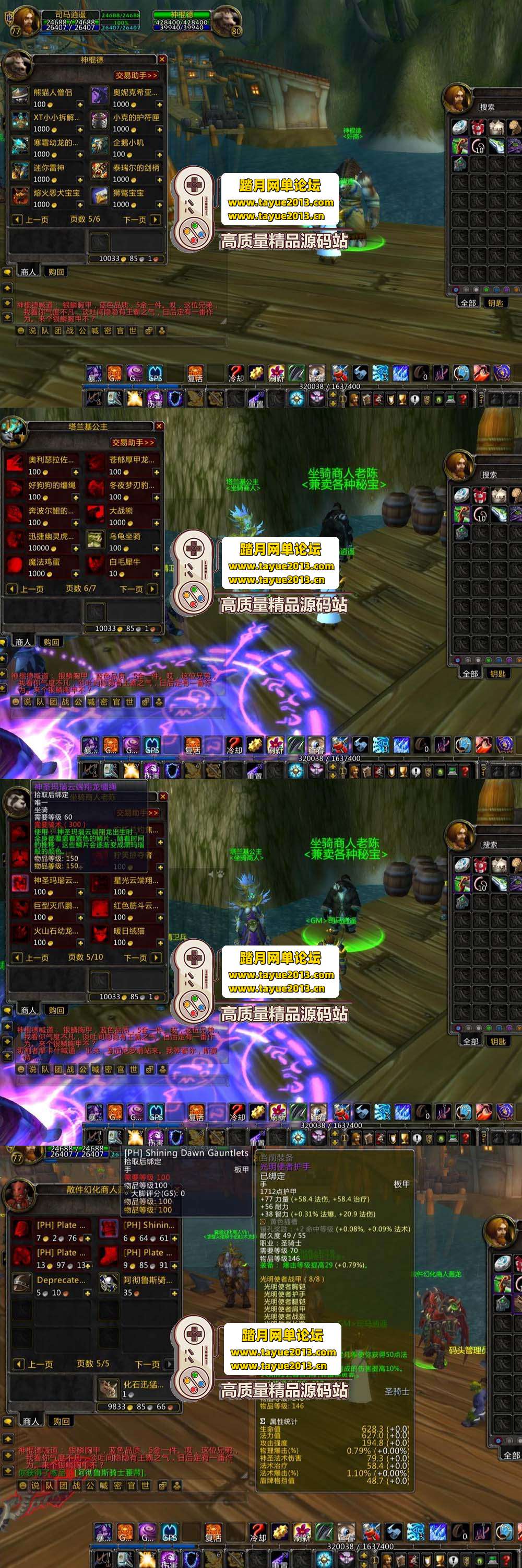 2.对部分商人售卖物品列表做调整,现在塔兰基公主售卖陆地坐骑,熊猫老陈售卖飞行坐骑。