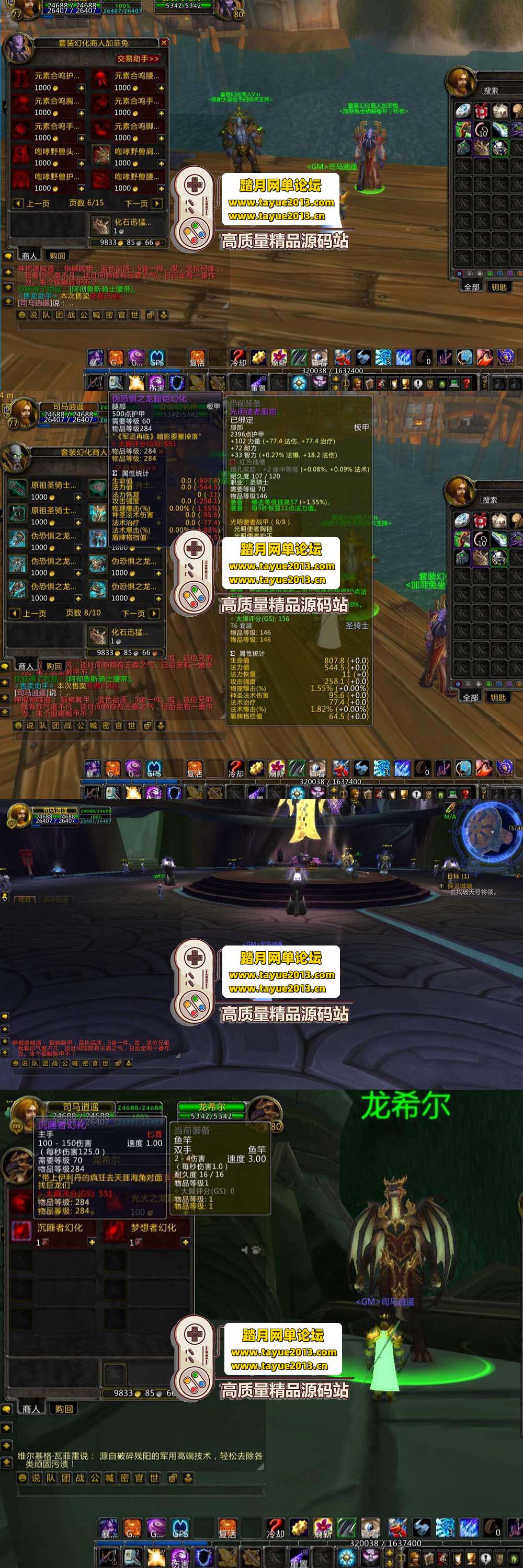3、套装更新:新增一套套装共6套,其中战士、死骑、牧师的高版本基于技术原因只能简化移植,故与官服存在造型差异。鱼人套装在散件商人处售卖。