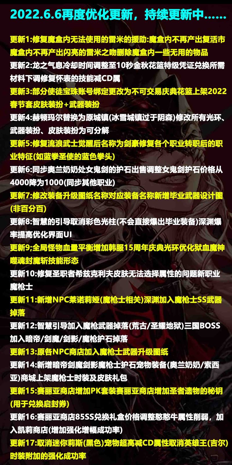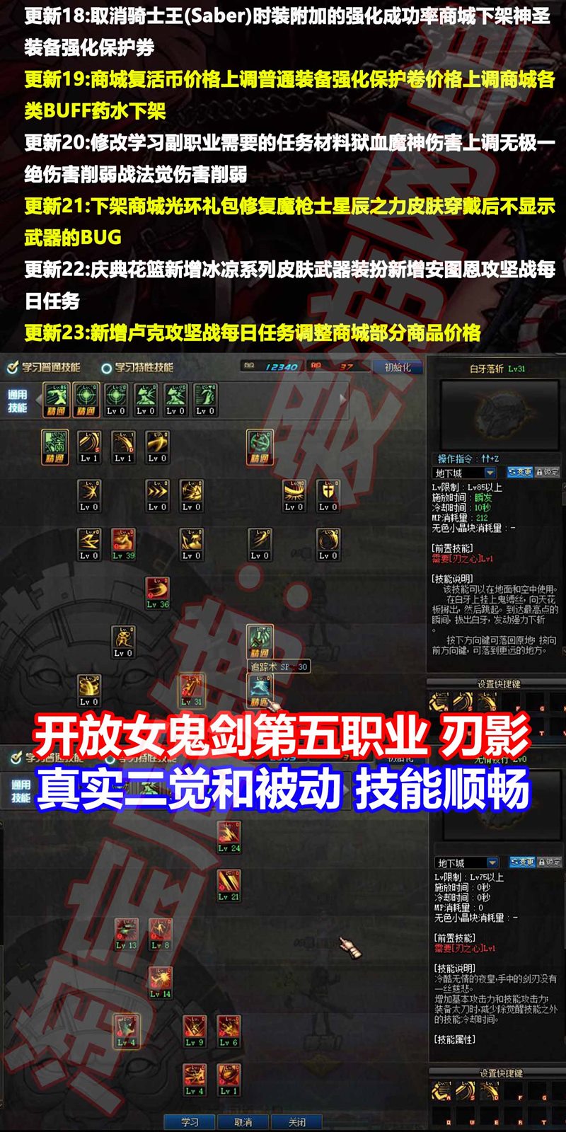 版本已更新到5职业女鬼剑、双职业魔枪士、机制修改可单人团本。